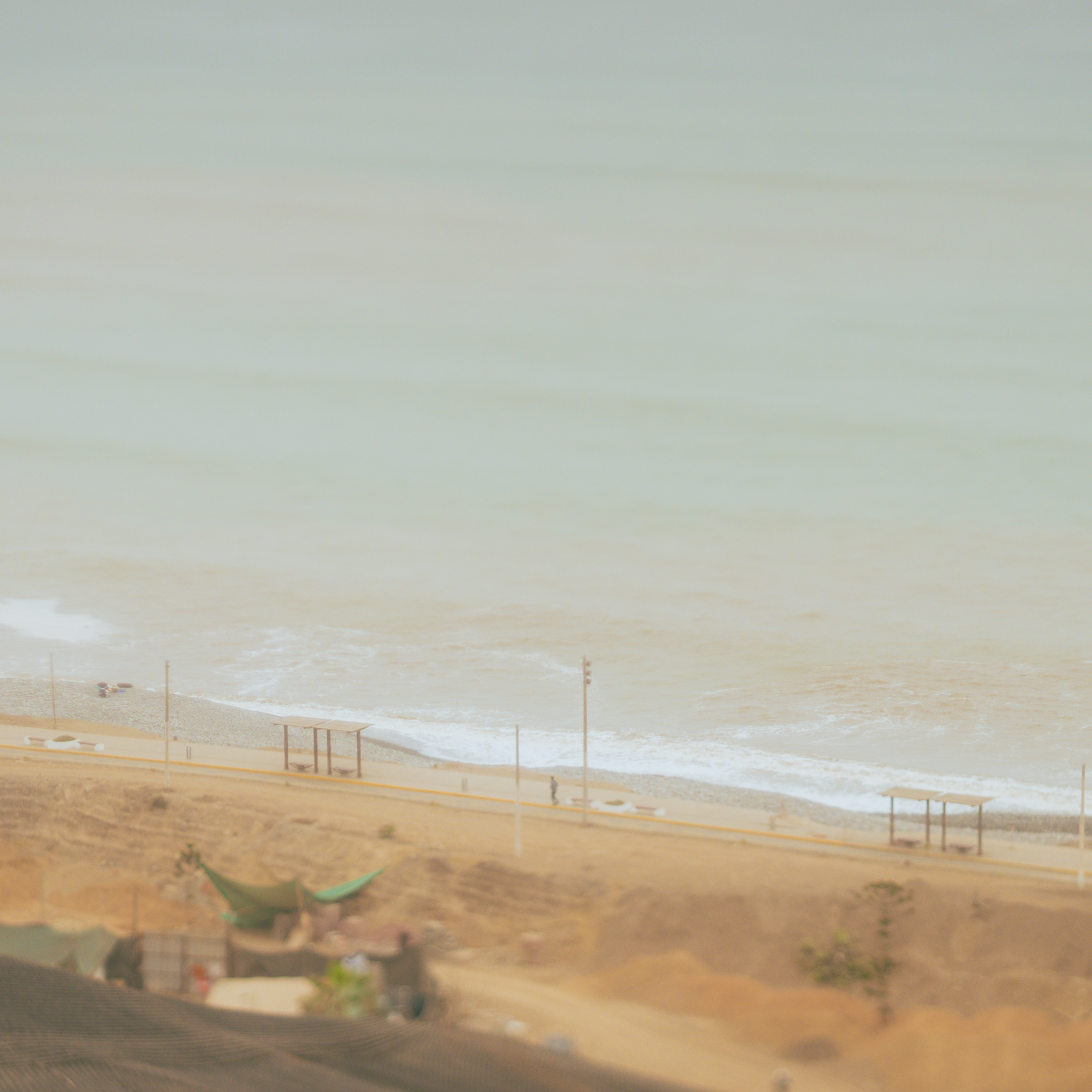 Colección de imágenes tomadas en la costa, en un día neblinoso.